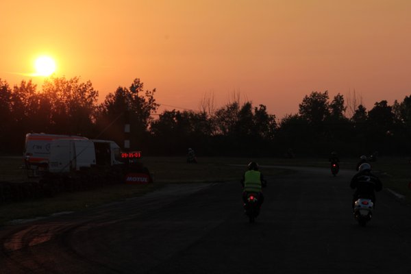 Beszúrás, féktáv, elmegy, visszajön, kívülről-belülről előzöm, visszaelőz, szikrázik a kipufogókönyök a földön, közben a karom alatt átbújik a Delírium Racing egyik profija és úgy eltűnik a sötétben, mintha sosem lett volna ott. Nem bánjuk, nem velük vagyunk versenyben, hanem saját magunkkal.