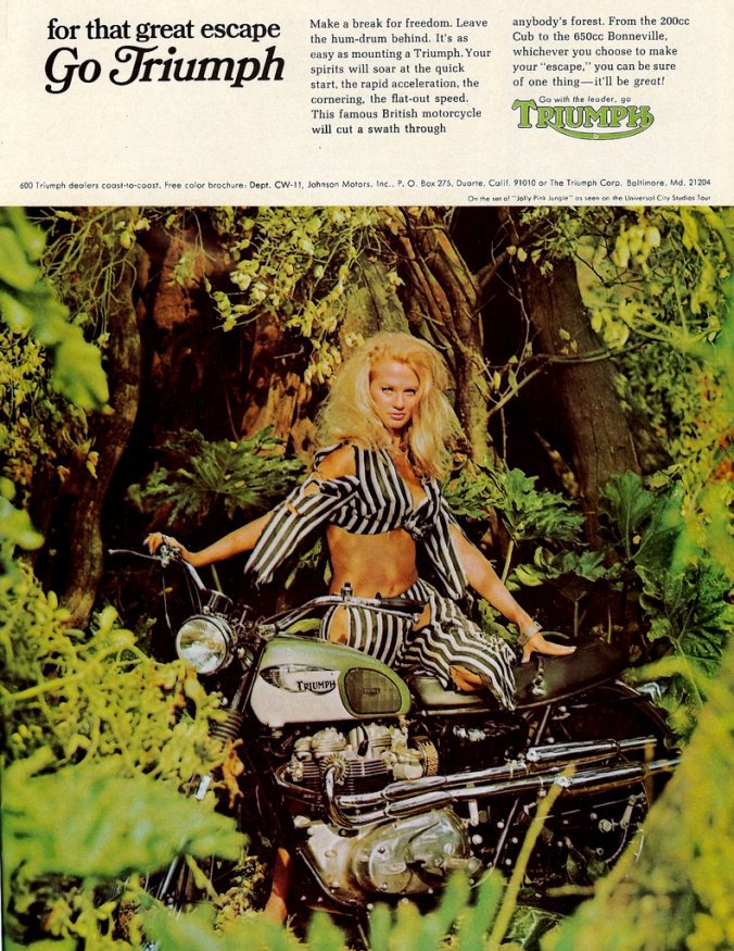 Volt Triumph a képek között is, képünkön egy 650-es Bonneville, ami egyértelműen a Steve McQueen által legendává érlelt Nagy szökés kult-hullámát lovagolta meg. Talán még szőke maca sem kellett volna a képre, de ártani éppen nem árt. Sokkal érdekesebb viszont a Monark. Hallott már valaki a Monarkról?