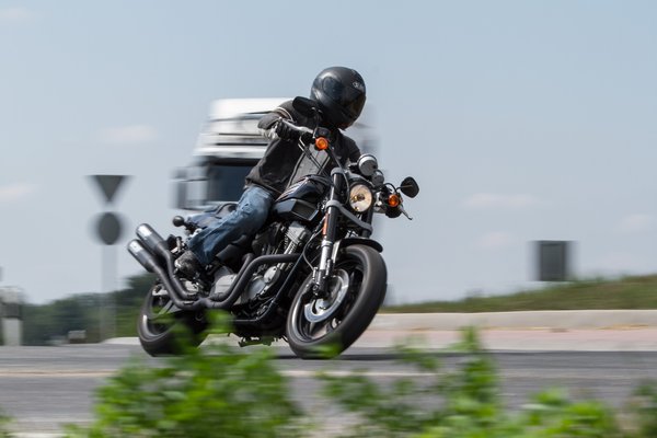 A V2-es karaktere csodás, nagyon finoman és szépen veszi a gázt, lent sem döglött, de szépen ki lehet forgatni hétezerig – a legjobb talán 4-5 ezres fordulat között fűzögetni a kanyarokat. Zsíros, élvezetes járása van, a vibrációk kellemesen átjárják a testet, nem is értem, hogy a Harley-rezgéseknek miért nem tulajdonítanak pozitív élettani hatásokat, mint a macska dorombolásának, én például egy fél óra motorozás után határozottan jobban éreztem magam.