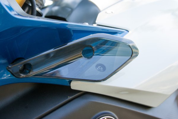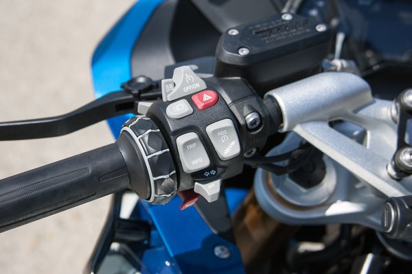 A műszerfalnál a mérnökök még nem álltak be a sorba: a megszokottól eltérően a kilométer-óra mutatós, a fordulatszám-mérő pedig digitális. Ezért aztán az utóbbit legfeljebb saccolni lehet a több féle beállítást kínáló LCD kijelzőről. A tengernyi funkció ellenére (tempomat, fedélzei számítógép, stb.) a kormánykapcsolók nagyon jól használhatóak. A Komfort csomag részét képezi a markolatfűtés és guminyomás-szenzor, ebben a szettben a króm kipufogó a kakukktojás. A navigáció kezelését könnyíti a bal oldali markolat mellett található kontroller. A gyűrűt tekerni és billenteni is lehet, de a menet közbeni kezeléshez nem árt némi gyakorlat.