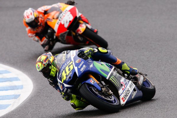 A japán futam pontosan úgy indult, mint ahogy arra mindenki számított, és már a szombati edzésen a yamahások párharcára figyelt a közönség. Rossi tőle nem megszokott módon, bravúros motorozással, kis híján megszerezte a rajtelsőséget, de Lorenzo az utolsó pillanatban nyolc századdal előzte, így a két versenyző egymás mellől rajtolhatott.