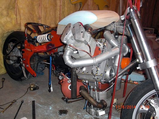 A szokatlanul ormótlan csillag-elrendezés miatt szinte mindent kézi munkával kellett legyártani hozzá, és ha valahol megakadt az ihlet, nem volt elég átpörgetni egy-két katalógust a megoldáshoz. A kipufogórendszer például eléggé kis szériás lett, illetve nagyjából minden úgy néz ki, mint egy kezdeti stádiumban lévő találmány. Kevint ez nyilvánvalóan nem zavarta, hiszen ő nem abban az értelemben motorépítő, ahogyan a többség használni szereti a kifejezést.