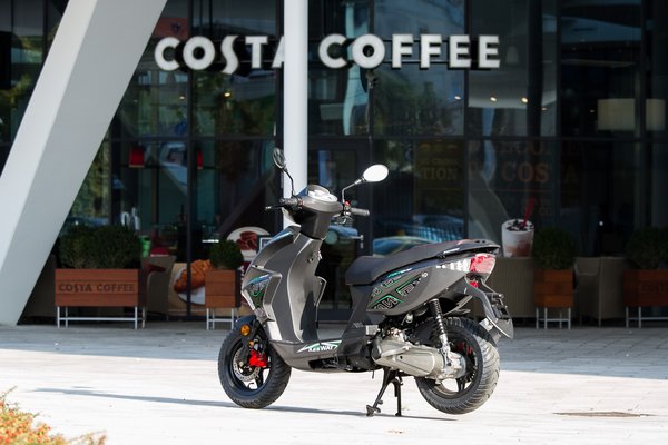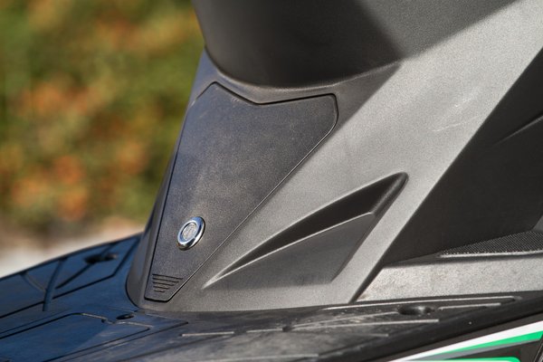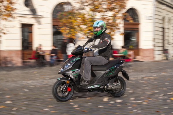 Ugyanígy praktikus, hogy egyaránt van közép- és oldalsztender, illetve lehet élni nélküle, de azért jó, hogy kapott vészleállító gombot, amit még a lényegesen drágább robogókról is rendszeresen lespórolnak. Persze az sem lett volna rossz, ha az index kapcsolóját úgy tervezik, hogy kesztyűben is használható legyen, egy idő után elkezdtem lenézegetni a műszerfalra, hogy sikerült-e az irányjelzés, mielőtt gyanútlanul kilapít a mögöttem érkező. Szintén nem szerencsés, hogy a világítást nekem kell felkapcsolnom – lakott területen is kötelező, igazán lehetne automatikus, már csak azért is, mert pont a motoros jogosítvány és tapasztalat nélkül ötvenessel cikázó szerencsétlenek vannak a legnagyobb veszélyben, és tízből kilencszer ők azok, akik akár országúton is simán gurulnak lámpa nélkül.