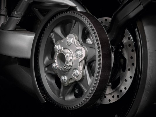 A power cruiserként meghatározott gép blokkja egyébként nem azonos az alap-Diavel Testastretta 11° egységével. Itt ugyanis kicsivel nagyobb lökettérfogatú, 1262 köbcentiméteres Testastretta DVT-ről beszélhetünk. Kicsivel gyengébb is lett egyébként: 162 helyett 156 lóerő, a nyomaték pedig 130,5-ről csökkent 128,9 newtonméterre. Az erőt szíjhajtás viszi át a hátsó kerékre. A menetkész tömeg 247 kiló.