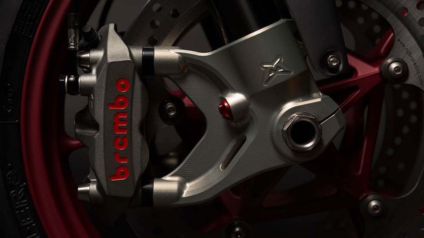 Kicsit az adatok közé pillantva azt látjuk, hogy Erbacher az első futóműbe ötven milliméteres villát választott – a szebb napokat megélt Marzocchitól -, a rugóút itt 120 milliméter. Hátul viszont egészen keveset rugózhatunk, mindössze 76 millimétert enged meg az Öhlins felfüggesztés. A fékrendszer Brembo monobloc rendszerű, elöl két, hátul egy tárcsával. A kipufogó és a lámpák a svájci építő saját munkái.