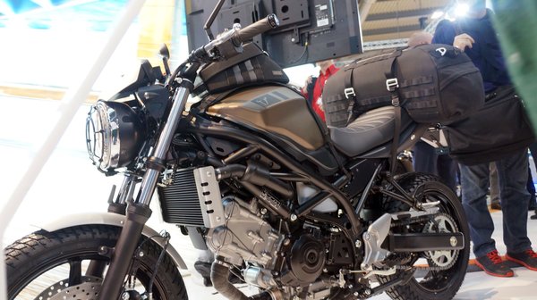 Korábban a milánói EICMA kiállításon már szerepeltek ezek a scrambler gépek, sőt láthattunk egy Café Racer stílusú SV650-est is, amihez a Gilles kiegészítőit használták. A csutkakormány, az állítható lábtartó és mart alumínium elemek a kanadai cégtől származtak. Úgy tűnik, a Suzuki egy teljes modellcsaládot akar felépíteni a típus köré.
