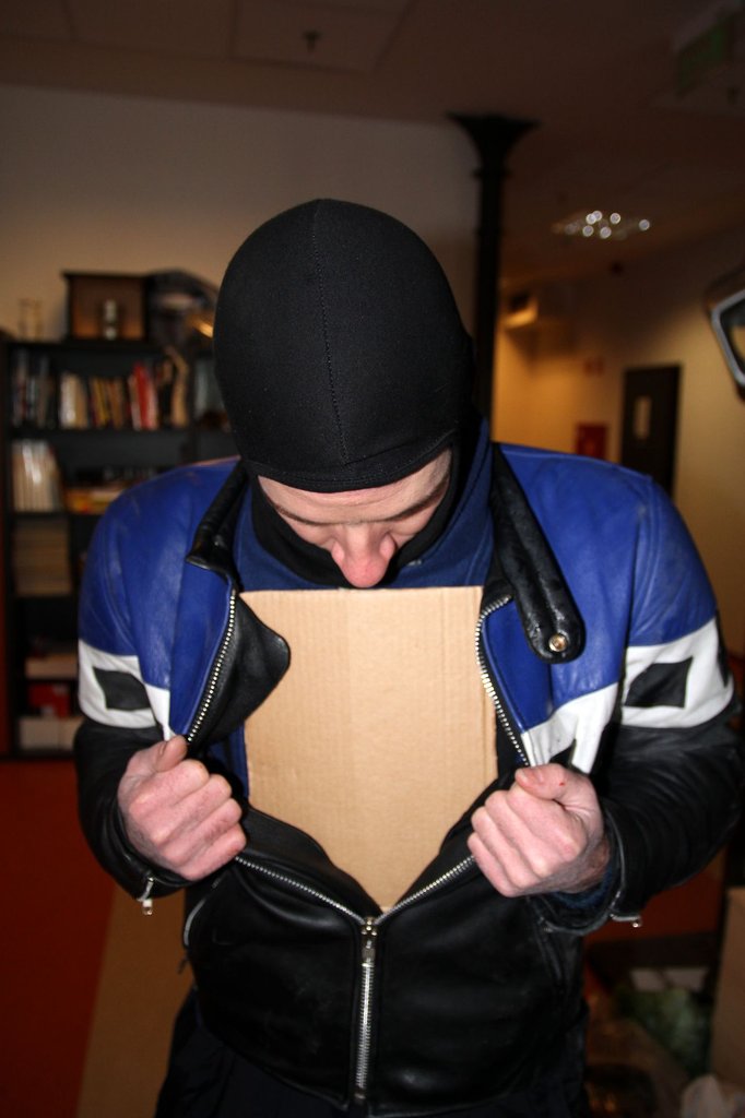 Míg halogattam a cipővásárlást, vastag sízoknival próbáltam enyhíteni a lábfagyást, közepes sikerrel. A mellkasomra pedig nagyon paraszt megoldást találtam ki egyik este, amikor hurutgyanúsan szálltam le a robogóról. Úgy okoskodtam, a három réteg pulóver plusz a félcentis bőrből varrt dzsekim hőszigetelésben elegendő kell hogy legyen, a baj az, hogy befúj a szél. Úgyhogy kerestem egy kartonlapot, méretre vágtam, és másnap reggel becsúsztattam a dzsekim alá, a kritikus zónába. Meglepően hatásos megoldásnak bizonyult, a mellkasfázást elvágtam.