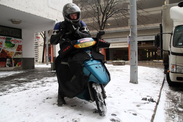 A mai mínusz öt fok után úgy érzem, csak a csúszós út állíthat meg. Ma reggelre mindent felsóztak, ezért mertem elindulni, de a jégtól-hótól azért még mindig fosok. Csikós mester, a téli robogózás pápája még délutáni havazásban is elindult hazafelé a Spacy-jével, de az elmondása alapján az már inkább volt őrültség, mint bátorság. Olyan viszont, ami az év első munkanapján volt, általában csak évente egyszer fordul elő Budapesten, a főutak többnyire robogózhatók még télen is. Úgyhogy könnyen lehet, hogy rám rohad az a bérlet, amiről egyre inkább azt gondolom, hiba volt megvenni.
