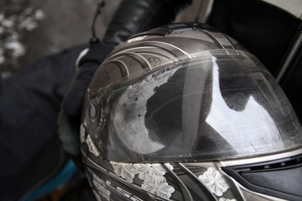 Ma reggel viszont már nem bírtam magammal. Még hazafelé kitaláltam, hogy ciki, nem ciki, felhúzom a vastag talpú, kaplis munkavédelmi bakancsomat, hogy ne fagyjon le a lábam, és kipróbálom a plexipárásodásra kapott tippet, amit egy olvasó küldött. Miután makulátlanra pucolja az ember a plexit (alap), bekeni a belsejét mosogatószerrel, és állítólag nem fog párásodni. Próbáltam kitalálni, mi lehet a magyarázat, aztán rájöttem, hogy a mosogatószer boldogan elegyedik a vízzel, így elvileg meg tudja kötni, és közben átlátszó marad.