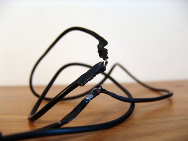 Mivel két szabadon tartott törpenyúl él velünk, van már gyakorlatom az ilyenfajta műtétekben - a szétégett részt kivágtam, a szálakat blankoltam, összesodortam, egy pötty a forrasztópákával, kis szigetelőszalag, és készen is van.
