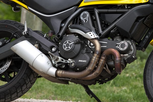 A Scrambler 803 köbcentis motorja is az 1979-ben megjelent, azóta folyamatosan továbbfejlesztett Pantah blokk, amin ismét sokat reszeltek. Új benne a 88 x 66 mm-res furat/löket arány, és az olajfürdős, mechanikusan működtetett csúszókuplung. Szintén új a térhálós csőváz, ami úgy lett kialakítva, hogy bal oldalt vegye fel a banán alakú, alumíniumöntvény lengővilláról a rugóstagot. Hátul a szokásos 180/55 – 17-as gumiméretet használták, de elöl 110/70 – 18-at választottak Pirelli MT 66 R gumival, ami alapformájában húsz éve debütált az akkori szupermotókon.