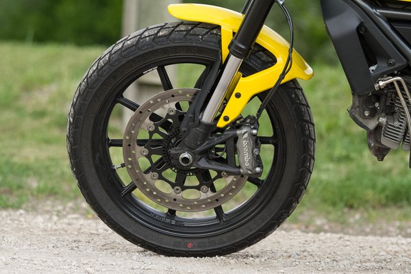 A blokk nagy mértékben segíti a felhőtlen kanyarvételt. Nagyon finoman követi a gázmarkolat mozgásait és teljesen egyenletesen tol. Csak 75 lóerős? Untig elég! Az alpesi szerpentineken, ahol kedvem szerint kitombolhattam magam a Scramblerrel, a 200 lóerős sportgépek is igen gyengén néztek ki vele szemben. Mert a széles kormányos, kezes, elöl-hátul 150 mm rugóúttal ellátott Ducatival az egész erőt át lehet vinni az aszfaltra a keskeny, rumplis utakon.