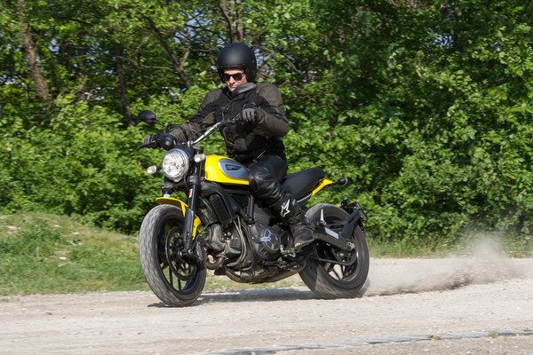 Ha már Scrambler, azért hagyjuk el vele néha az aszfaltot. Murvás utak? Persze, jöhetnek, ott ugyanolyan jól terelgethető az olasz vas, mint az aszfalton, a finom gázreakcióknak köszönhetően szép hosszú csíkokat lehet húzni vele.