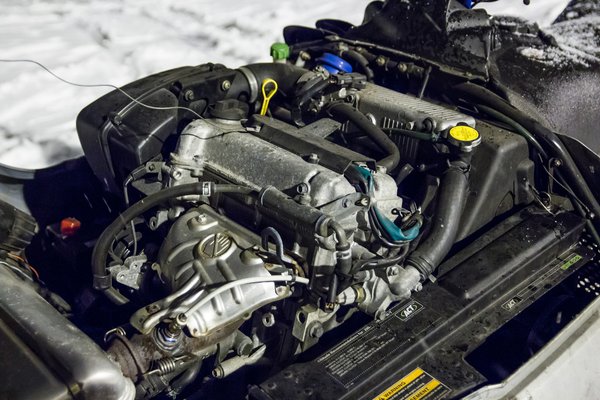 A Bearcat 660 köbcentis, három hengeres motorja is haszongépjárműves hangolású. A nyomórudas blokk nem szereti a pörgést, lentről szépen húz, a fokozatmentes CVT váltót is erre lőtték be. Létezik ebből egyébként turbós változat 110 lóerővel, de arra inkább tekintsünk a hómobilok gran turismojaként. A veretős szánok pedig még erősebbek, simán lehetnek 180-190 lóerősek is.