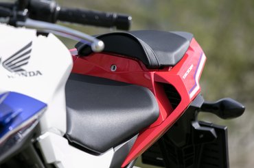 Menet közben derül ki igazán, hogy a japánok mennyire tisztában vannak az ergonómiával: szinte automatikusan vesszük fel a helyes testtartást, térddel a tankot fogva – fel sem merül, hogy terpeszkedhetnénk is, ami különösen hasznos tulajdonság, ha valaki első motornak veszi a CB500F-et –, a gép szinte tanít rá, hogy hogyan érdemes megülni. Az utasülés már nem ilyen bizalomgerjesztő: a kis háromszög inkább csak szükségmegoldás, de az idei modellen legalább megemelhető az első pereme, így talán egy fokkal kevésbé kényelmetlen az utas számára.