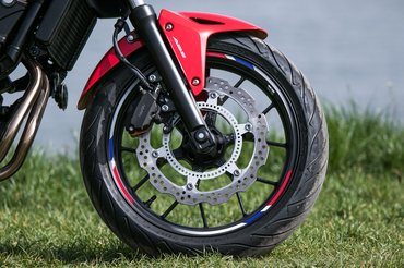 A futómű is bolondbiztos konstrukciónak tűnik: ahhoz elég feszes, hogy kiszámíthatónak érezzük, de közben határozottan kényelmes. Csak a rövid, de nagy úthibákat nem tudta jól kirugózni, de a motor stabilitása ezeken sem került veszélybe. Viszont az egyenesfutása hibátlan, és a széles kormány miatt minden mozdulatunkat pontosan követi a motor. Az volt az érzésem, a Hondánál úgy igyekeztek hangolni a futóművet, hogy önbizalmat ébresszen, sőt, azt is elérték, hogy egyáltalán ne tűnjön fel a 190 kilogrammos menetkész tömeg, még kis tempónál sem. Az új F egyik fejlesztése az első villa előfeszítésének állíthatósága, így valamelyest mindenki magához szabhatja a futóművet. Nem érzem túlzásnak, hogy a futómű adja a CB500F karakterének lényegét: gyors, fordulékony és stabil gép, amelyet szinte bármilyen tempó mellett, szinte bárki képes úgy vezetni, mintha motoron született volna.