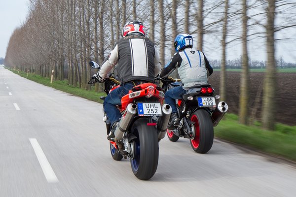 A kifejezetten kényelmes üléspozíció se tévesszen meg senkit. Virtuskodáshoz van ez kitalálva, amit a harapós fék, a csúszókuplung és a feszes futómű is támogat. Kivéve a hátsó féket, mert az eléggé érzéketlenül működik. A húzó- és nyomócsillapítás elöl-hátul állítható, szériafelszereltség a fém fékcső. A széles kormány garantálja a mókát, azonban 200 felett már fogja a szelet, amitől kissé kóválygóssá válik az egyenesfutás. Durvább kormányszitálás ellen persze van kormánylengés-csillapító, amit ajánlott egy állítható darabra kicserélni.