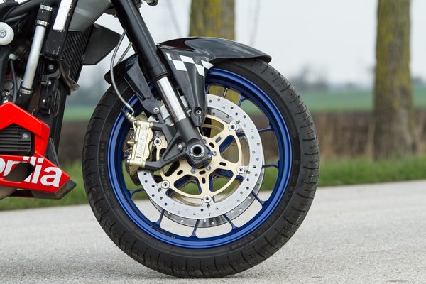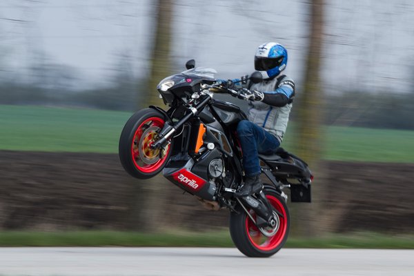 Kevés mai motorral lehet egyesben gázra hanyatt esni, ezzel még simán. Hatezer környékén ugyan érezni egy kis lyukat teljesítményben, de a gázreakció is eléggé közvetlen, szóval nem biztos, hogy a Tuono jó választás a friss jogsi mellé. Egy mai V2-es nakedhez képest igazi nyers gép, amit vezetni kell.