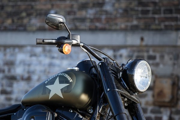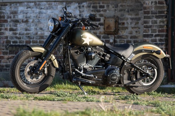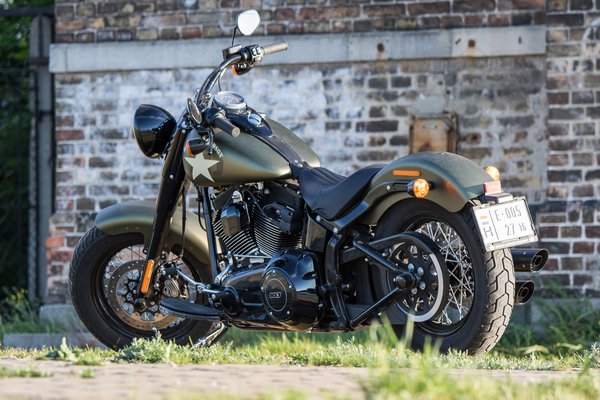Nyilván a különleges zöld szín és a katonai tematika van delejező hatással a fogékonyakra, mert első ránézésre nincs sok újdonság a Softail Slimhez képest. Az S betű a 110 köbinches, vagyis 1802 köbcentis blokkot jelenti, amit eddig csak a Touring modellekbe épített a Harley. A hengerfejnél diszkrét Screamin Eagle felirat figyelmeztet, hogy ez bizony hergelt valami, 92 lóerő pedig nem vicc.