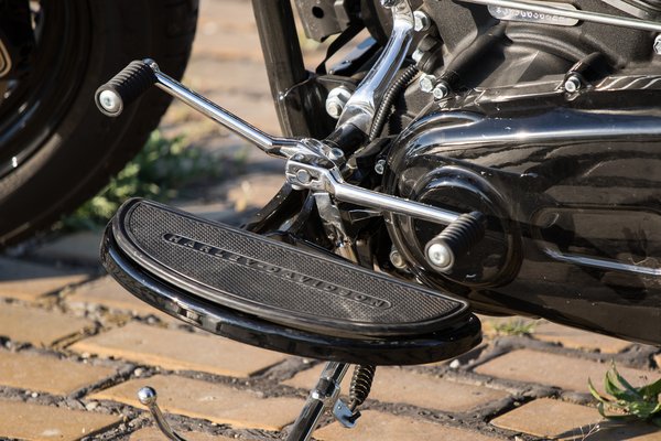 A kétkarú, himbás váltókarra megint csak inkább magyarázat van, mint mentség, szerencsére könnyen hagyományosra alakítható. Ha ezeken sikerül túllendülni, jön a döbbenet: mikor lett a Harley ennyire igénytelen? Persze visszagondolva mindig is ilyen volt, még a nem átépítős jellemű tulajdonosnak is hagytak teret, hogy befejezze a motort. Ami fémnek látszik, az fém, azokon nem próbáltak olcsóskodni, a sárvédők rendes acéllemezek, a fényszóró háza után is fizetnek a méhben, ettől függetlenül sok a filléres spórolás.