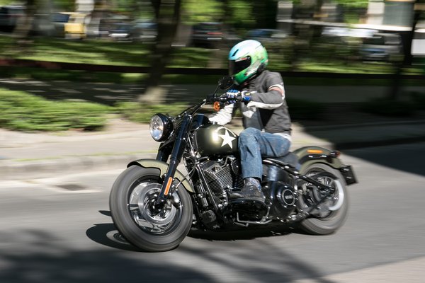A motorerő visszahozza a bugit, amit a 103 köbinches, sima Softail Slimből hiányoltam, vagyis ha ráteszem a gázt, végre történik valami. Nemcsak a hutty-hutty-hutty hangú extra-alacsony fordulatú gurulás van, hanem lehet neki tolni, sőt érdemes is. A legtöbb hasonló lökettérfogatú cruisert csak a drudrudrudru-ig lehet elforgatni, ezt viszont egészen a SVRHRÁÁÁÁÁÁÁ-ig – fordulatszámmérő híján hangokhoz kapcsolódik az élmény.