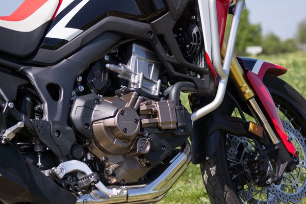 Nem bődületesen erős a CRF motorja, de perfekt a befecskendezés hangolása, gyorsításkor és gázelvételnél semmi nyoma a túrázó életét mérgező éles gázreakciónak. A tökéletesség innen már nincs messze, bár volna még munka a DCT hangolásával, mert az általános D-üzemmódban, sokszor nem kapcsol alacsonyabb fokozatba, így túl mélyre engedi a fordulatszámot, aminek gyakori láncrángatás az eredménye, amikor ismét rátekerjük.