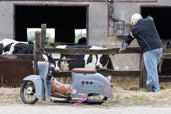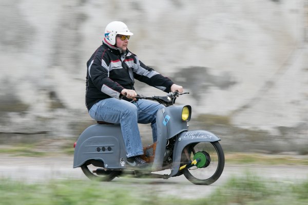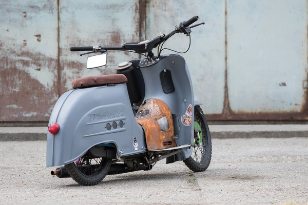 Alapból nem is gerjednék be egy szoci motorra, de mivel a KGST Vespájáról van szó, egészen más a helyzet. Formailag a Schwalbe eléggé ott van, sőt, egyesek szerint még a Simson KR50-nél is zseniálisabb, nem véletlen, hogy elég magas szinten pörög akelet-német reexport. Ez a darab egy 1977-es példány, az úgynevezett turbóhűtéses szériához tartozik. Az extra levegő nagyon kell a blokknak a lemezburkolatok miatt, és hát a tempó sem egetverő, így a menetszélre sem lehet igazán számítani. Ez elsősorban nem is a henger miatt fontos, a gyújtás előbb odakozmál.