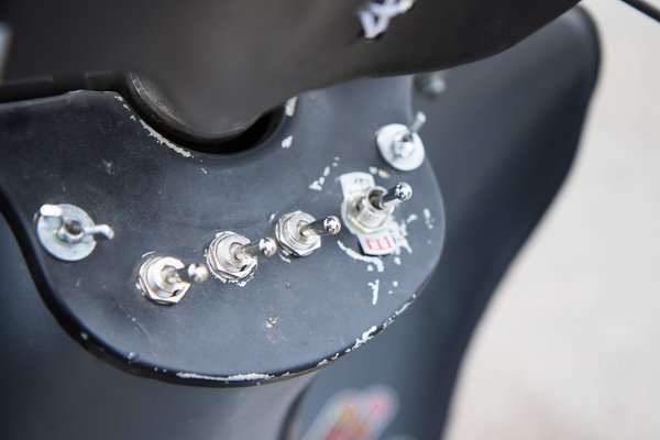 Hú, el ne menjek a kapcsolók mellett. Lehet tippelni mi micsoda. Segítek, haladjunk balról jobbra. Tehát az első a világítás, a második a távolsági fényszóró, a negyedik a gyújtás, na de mi lehet a harmadik? Megsemmisítő gomb? Hideg. Nitró? Hideg. Én sem jöttem volna rá: az kapcsolja az ülés alatt eldugott piros IFA indexet, hogy sötétben is nézzen már ki valahogy, alvázneon keleti blokk módra.