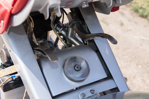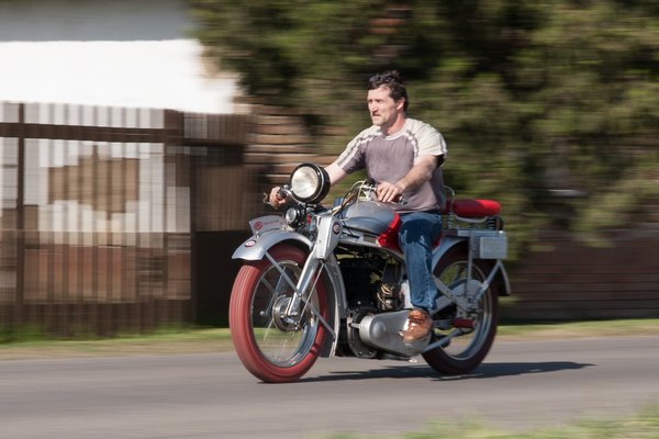 Zoli izmos srác, ért is a motorokhoz bitangul, ehhez a példányhoz kiváltképp, hiszen évtizedek óta ismeri, 2003 óta az övé, ráadásul éppen attól az öregtől vette, aki évtizedekkel ezelőtt belevitte a veteránmotorozásba, és akitől az egész szakmát tanulta. Benzincsapot nyit, előgyújtást teker, megfolyásig úsztatja a karbit – bizony, részben úgy megy ez, mint annak idején a Rigán. Csakhogy itt egy ménkű ötszázas egyhengerest kell átforgatni a rövid berúgókarral, ami csak úgy erőből nemigen megy. Ha a fenti előműveletek együttállása biztosított, már csak a bal oldali kis dekompresszor-héblit kell behúzni a kuplung mellett, rárúgni, és épp a lendítés utolsó pillanatában, tökéletesen eltalált időzítéssel felengedni.