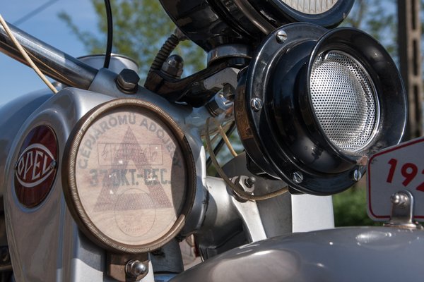 Képzeljenek el egy rakás, kék füstöt köpködő, gumi tányérnyerges, ágas-bogas csővázú, egyen-fekete, zakatoló rettenetet – tipikus motoros parkolót látnak a múlt század húszas éveinek végéről. Ebbe a miliőbe belibben egy rikító ezüstszürke, világítóan piros nyerges, kerekes és markolatos, dübörgő kipufogóján oxigént lehelő, brutális szegecsekkel összefogott vázú gép. Nem is Opel, hanem isteni látomás. Sem előtte, sem utána nem volt hasonló, rézkupolás art deco-palota volt a szénfüstös szükséglakások tengerében, ma meg a steampunk magasiskolája.