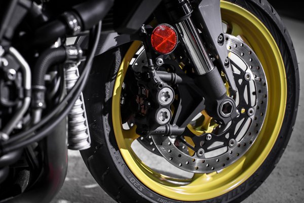 A kipörgésgátló amúgy még a vizes zebra teszten is jól szerepelt, finoman avatkozott be, és hamar összeszedte magát, míg szárazon egyáltalán nem volt zavaró a jelenléte. A Bosch gyártmányú ABS hozza az iparági sztenderdet, azonban az első fék tompább az R1-nél – a radiális felső munkahengert elspórolták.