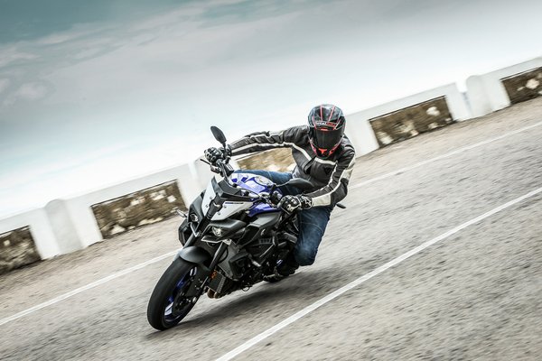 A szintén opciós gyorsváltót sajnos nem lehetett kipróbálni - de ha az MT-10 is az Aprilia Tuonóhoz hasonlóan durrog vele, akkor Berlinen kívül Mattighofenben és Noalében is megkezdhetik az aggódást. Ugyan a futómű és a vázkomponensek több mint felén változtattak az R1-hez képest, a kezelhetőség elsőrangú. A minden paraméterükben állítható (hátul gyors- és lassú csillapítás is) rugózó elemek megegyeznek a csutkakormányos testvérrel, csupán az alapbeállításuk lágyabb.
