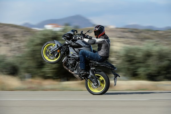 A Yamaha mérnököknek van humorérzékük, a kipörgésgátló (TCS) első két beállításában simán lehet lógatni, csak a harmadikban nem tud készakarva sem hanyatt esni. Ráadásul újraindítás után is megtartja a beállításokat, ez alól csak az off-állás jelent kivételt.