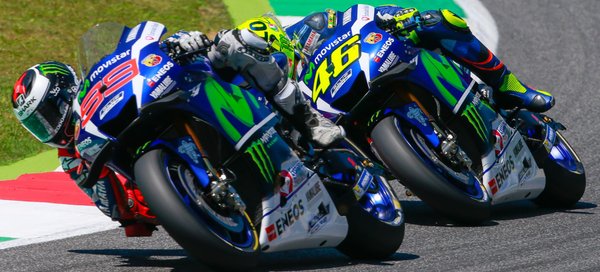 Megemlítve pár szóban a gumikat, a Le Mans-i futam után, ahol szintén a yamahások domináltak Lorenzo-Rossi sorrendben, sokan aggodalmukat fejezték ki a mugellói versennyel kapcsolatban, főleg a nagy sebességgel abszolválandó lejtős szakaszok miatt, mert a francia bukásokból kiindulva, sok jóval nem kecsegtettek a Michelinek. Mindkét gyári Ducati és még Marquez is a kavicságyban végezte, ehhez képest Mugellóban szinte alig láttunk hasonló esetet, még a legfélelmetesebb kanyarkombinációk sem okoztak nehézséget az abroncsoknak, ugyanakkor túlzott óvatoskodásról sem beszélhetünk, mert a mezőny három másodperccel rövidebb idő alatt teljesítette a versenytávot, mint tavaly.
