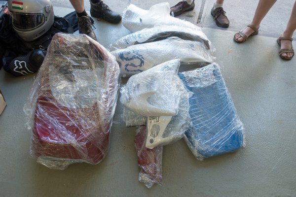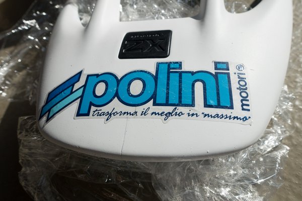 Adott volt tehát a világoskék Polini-szín és az elég leharcolt állapotban lévő idomok. Estünk vele párszor, a fejidomot a tavalyi futam alatt inkább eltörtük, hogy hozzáférjünk a fényszóróhoz, mert nem volt időnk szüttyögni a csavarokkal (amatőr hibát vétve elfelejtettük beállítani a magasságát és este döbbentünk rá, hogy a semmibe világít, buktunk is vele értékes perceket), a két alsó-oldalsó burkolat szétkarcolódva, mély árkokkal tele, a típusjel letörve, matrica-maradványok mindenhol és szutyok. Idén így nem állhatunk rajthoz és kész.