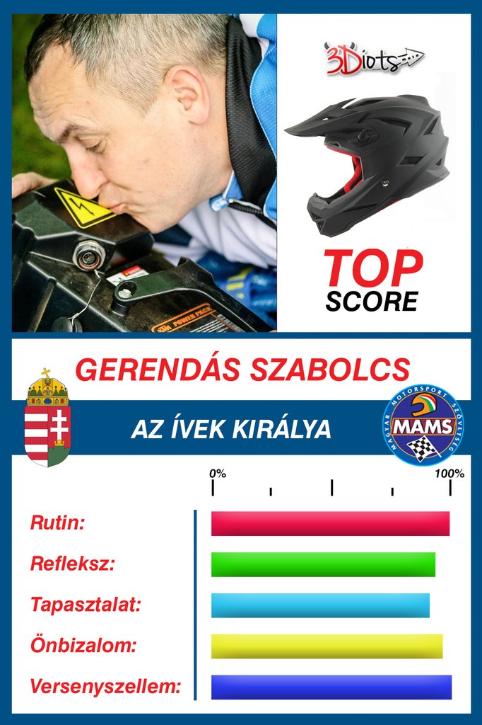 Gerendás Szabolcs: Az ívek királya. Az amperek őrzője. A kapacitás számlálója! 365 nap alatt az elektromobilitás fenegyereke lettem! Számos eredményt zsebelek be versenyről versenyre a KTM elektromos motorommal. Jelszavam: csak csendben, csak halkan, hogy senki meg ne hallja.... No de most! Most adok az 50-es blokknak, és a szúnyogcsődör hanggal belebegem a versenypályát! Füldugót persze használok, hogy megmaradjon a csendes száguldás érzése.