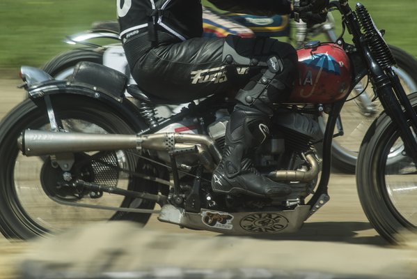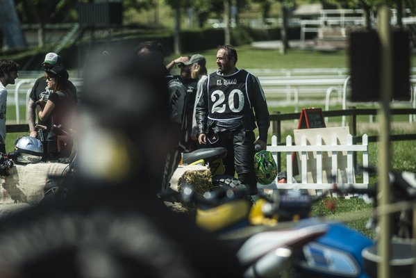 A gépátvételre menet azért tudatosult bennem, hogy oltári nagy hibát követtem el, amikor végignéztem a nevezők névsorát. Talán kevesen tudják, hogy ezek a manapság divatos motorépítők azért azon túl, hogy menő gyerekeknek, férfiaknak számítanak, eszméletlen jól motoroznak. Amit látunk, az csak a manír, amit pedig a motoron művelnek, ismét egy más dimenzió. Roland Sands, azon túl hogy eszméletlen giccses, ugyanakkor szép motorokat épít, egykor amerikai bajnok volt GP 250-es kategóriában egy TZ250-es Yamahával, az utóbbi időben pedig krosszozik és flat track-ezik. Jamie Robinson, aki jelenleg az Alpinestars és a Ducati egyik legkelendőbb reklámarca, ugyancsak bajnok volt GP250-ben Angliában, majd erőteljes szereplés az EB-n, valamint a világbajnokságon, aztán Brit Superbike bajnokságban, és két alkalommal a TT-n. Thor Drake, a portlandi SeeSee Motorcycles alapítója megrögzött terepes, vintage krosszversenyző, majd a flat track spanyol nagyjai, ősrégi piszokgyors Bultacóval a nyeregben, Karl Maier, négyszeres salakmotor-világbajnok, egy átépített BMW-vel, Marco Belli, a sportág legendája, csak hogy néhányat kiemeljek. Szóval egy pillanat alatt nyilvánvalóvá vált, nem gondoltam át rendesen ezt az egészet.