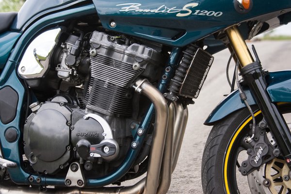 Ez az 1200-es Bandit viszont nem a karbantartás szobrának készült, hanem jól használható túramotornak, így került rá csomagtartókonzol három dobozzal, bukógombák, új markolatok és lábtartógumi, felnicsík és más hasznos apróságok.