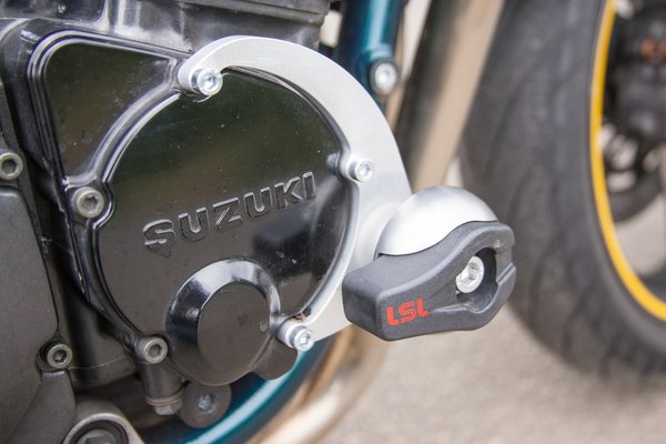 A zavaróan rövid gyári áttételek Szabolcsnak a teljes Yoshimura rendszer felszerelése után tűntek fel: minek forog ez ennyit? - hangzott el a kérdés, a megoldás egy foggal nagyobb első lánckerék képében érkezett. A blokk nyomatékos mint egy ökrösfogat, simán bírja.