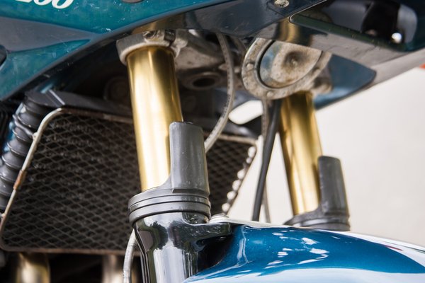 Emlékeim szerint a Banditnak az elejével voltak bajok, egyrészt kért egy új kormánycsapágyat, illetve döglött volt a csillapítás. Szabolcs a kormánycsapágyat kúpgörgősre cserélte, majd gyorsan szétszedte az első villát, kicserélte az összes csúszócsapágyat, az olajat, a szimeringet, valamint egy progresszív rugót is rakott bele. A krómszárakat vizsgálva feltűnt neki, hogy megjelentek a régi japán motorokra jellemző tűhegynyi rozsdapöttyök.