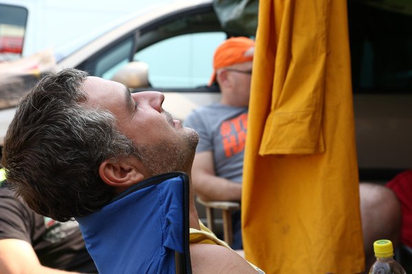 Három liter vizet úgy ittam meg, mintha a csatornába öntöttem volna, iszonyatosan felpörögtem a részleges sikerélménytől – megpróbáltam aludni, de abban a felajzott állapotban esélytelen volt. Hiába dugtam be a fülem, és fúrtam a fejem a nyirkos rongyok közé, a pálya nyomvonala pörgött a szemem előtt, aztán huss, már világos volt, ahogy kimásztam a sátorból, éppen Bistei indult váltani Pistát.