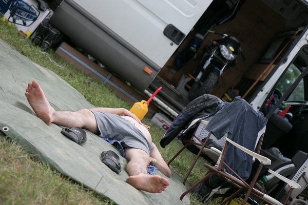 Iszonyatosan felpörögtem a menéstől, de meg kellett próbálnom aludni. A sátorhoz érve szembesültem a rossz hírrel, a viharban beázott, és minden vízben áll. Úgyhogy felmostam, teregettem, majd rádőltem a nyirkos párnára. Fogalmam sincs, meddig hallgattam a dudálásokat és a kerregő aggregátort, de sikerült elaludnom. Minden pihenésre fordítható percre szükségem volt, mert hiába a remek világítás, sötétben újra kell tanulni a pályát, frissnek és pengének kell lenni.