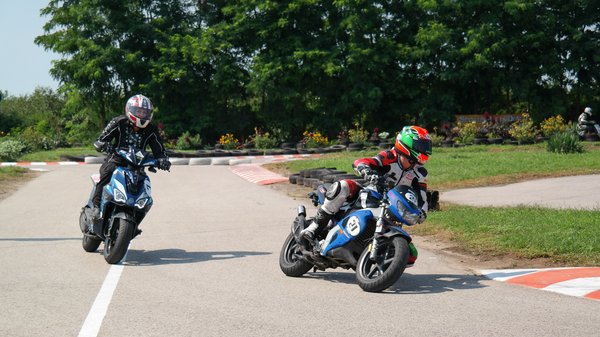 Több módszert kipróbáltam, és végül egy megoldás vált be: a motor hátulját terhelve, krosszos stílusban kinyújtott lábbal, a legszélesebb íveken fordulva, a lehető legfinomabban vezetve tudtam stabilan tartani a robogót. Sok hátrányunk van ahhoz, hogy még egy esést és szerelést megkockáztathassak, eldöntöttem, inkább elengedek néhány másodpercet, de miattam nem fogunk szerelni. Stabilan 1:13-akat tudtam menni, tiszta körökön összejött az 1:12, néha 1:11, de ennél többet nem mertem kockáztatni.