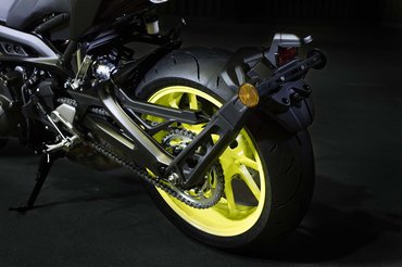 A Yamaha aktuális sikertörténete, a veszélyességig megvadult MT-széria az MT-09-cel indult el, most pedig olyan faceliftet kapott a típus, hogy az egy modellváltással is simán felérhetne. Az eddigi, egyáltalán nem fenyegető tekintetet helyett az MT-10-hez hasonló, nagyon gonosz, kétszemű, LED-es pofát kapott a motor - de az sem teljesen hülye, akinek a Kawasaki Z1000 ugrik be elsőre.