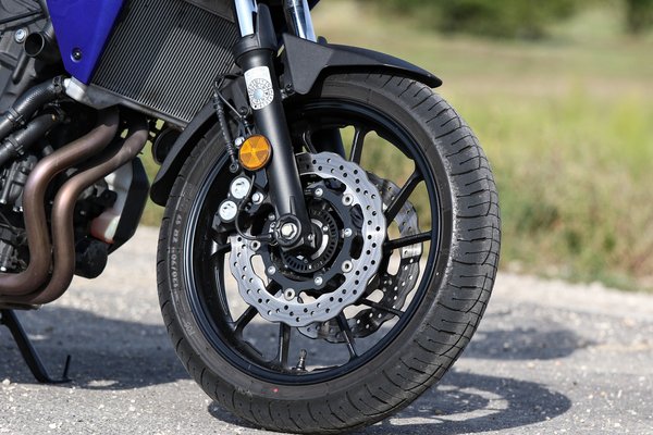 A nagy sebességű stabilitásnak jót tett a fél centivel megnyújtott lengővilla és a hosszabb központi rugóstag – az MT-07 130 milliméteréhez képest a Tracer 1,2 centivel nagyobb rugóúttal rendelkezik. Az első futóműhöz nem nyúltak, a megemelt fartól viszont 0,3 fokkal meredekebb lett a villaszög. Ezektől a módosításoktól nem borult fel a motor egyensúlya, egyszerűen csak stabilabb, nyugodtabb lett tőle.