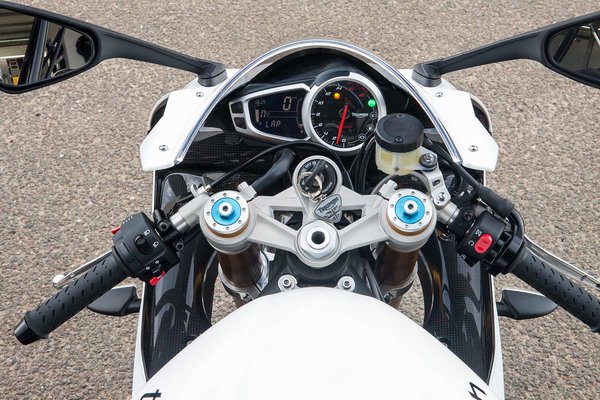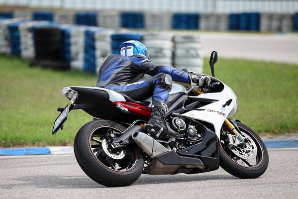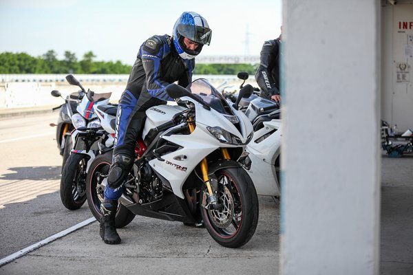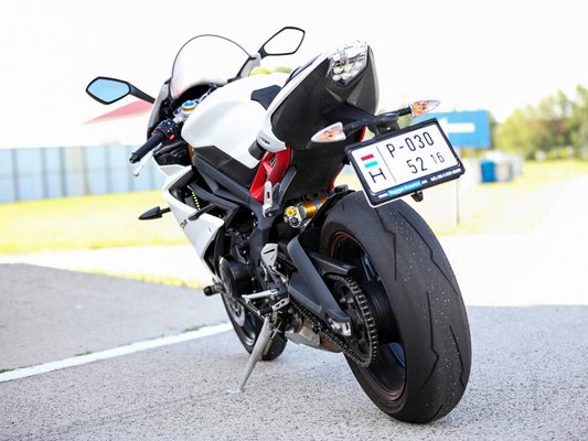 A széria Daytona R-rel a pályázás után pár héttel az utcán is fordultam egyet. A blokk használhatósága pályán kívül is lenyűgöző. Nem terhel feleslegesen nagy teljesítménnyel, de mindig van bevethető nyomatéka. Emiatt a szimpla közlekedés során nem kell feleslegesen szteppelni a váltón, egy ismeretlen kanyargós szakaszon pedig a megfelelő sebességfokozat helyett teljesen az útra lehet koncentrálni. A kormánycsutka viszont nagyon alacsonyan van ahhoz, hogy egész nap hegyen menjen vele az ember, arra tényleg alkalmasabb az egyenes kormányos Street Triple.