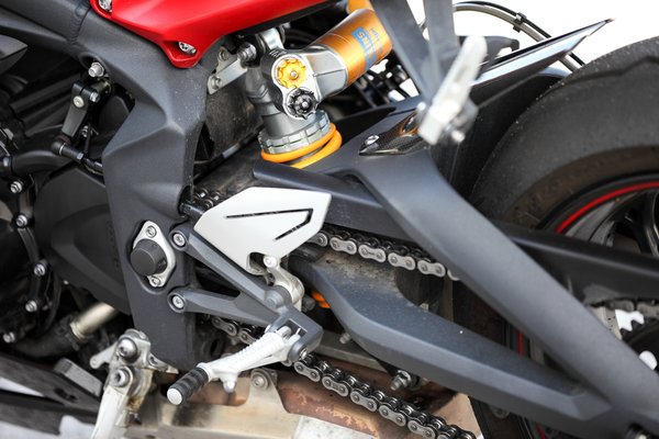 Ezt a fícsört az R-mentes alapmodell is tudja, nélkülözi azonban a karbon kiegészítők mellett a Brembo első féket és az Öhlins futóművet. Minden bizonnyal a Nissin és Showa termékek is ellátják a feladatukat, az olasz és a svéd specialisták termékei viszont igazán nyálcsorgatóan néznek ki. Azonban a Daytonával versenyzők szerint a gyári R-es futómű rugói a legtöbb, nyolcvan kiló körüli embernek nem megfelelőek, túl erős bennük a rugó.