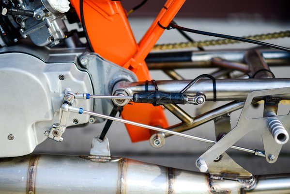 A gyári postás MZ sok eredeti alkatrészét tartotta meg, például az első villát is. A váz is csak átalakult egy kicsit, „a villaszög kitalálása nem fekete mágia: vágod, vágod, vágod, aztán egyszerre csak jó.” A CNC-vel gyártott alkatrészeket maga tervezi műszaki rajzon. Így történt a membránházzal is, ami elsőre nem sikerült jól, meg is tudja mutatni. A membrán egy karbonlap a henger és a porlasztó között. Ha elfárad, beszippanthatja a motor, és akkor jöhet az előrehozott generál.