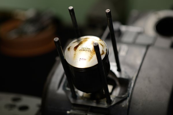 Nem ismertem volna fel a versenymotorjában a régi 250-es postás-MZ-t, pedig Sándor szerint a motor tök ugyanaz. Megnézhetem az eredetit is: ott áll a műhelyben egy teljesen gyári 250-es. Sándor, ne mondd már, hogy ugyanaz! Hasonlít, nem mondom, de hogy ugyanaz volna... Lehet, hogy kontextusából, a postás MZ-ből kiragadva változik meg drasztikusan a blokk, elvégre valahol ez a posztmodern művészet lényege: Jeff Koons kiragad kontextusából, a klotyóból egy vécécsészét, learanyozza, és kiállítja a Modern Művészetek Múzeumában. És tessék, mekkora műalkotás! Az MZ blokkján azonban, mint kiderült, nem csak a kontextus változott. Kisebb a hengerfej, kettővel kevesebb a hűtőborda, meg a hengertalpból van levéve 8 milliméter.