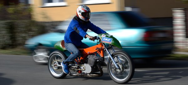 Oké, egy szezon félmillió forint, az a titok, hogy nem futamokra kell leosztani, hanem évre, és akkor csak valami havi negyvenegyezer. De akkor is. Hallottak már ilyet? Versenyzőtől, technikai sportban?! Szabályosan vallatni kell a csávót, hogy kiderüljön, valójában nem lehet annyira szar versenyző, hiszen a kevés egzaktul mérhető versenyzői paraméter egyik legfontosabbika, a reakcióideje neki a legjobb a mezőnyben. És hát ja, a motorja sem rossz. Igen, maga tervezte, mert az MZ-tuningnak nincs meg igazán az infrastruktúrája, nem mindent gyárt saját kezűleg, mert vízzel vágni, esztergálni, marni, hegeszteni mások jobban tudnak, de a végén maga rakja össze.